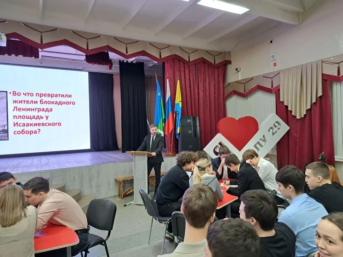 Учитель истории МБОУ СОШ № 29 Палько Роман Анатольевич, организовал интеллектуальное мероприятие для учащихся десятых классов, посвященное памятному событию — полному освобождению Ленинграда от нацистской блокады.