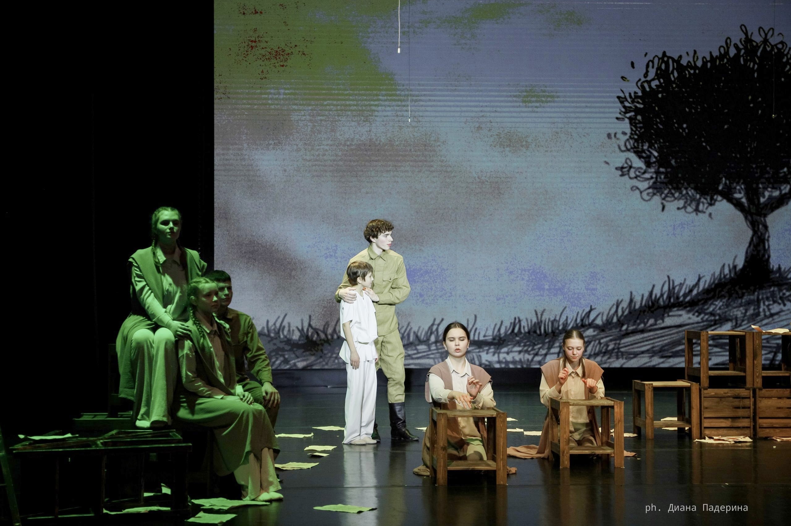 Спектакль не просто пересказывал сюжет Шолохова, он вступил с ним в смелый диалог. Фрагменты, перекликающиеся с сегодняшним днем, создавали зловещий эффект «эха войны» – ее отзвуков, проникающих в нашу жизнь. Хореографические номера, лишенные слов, наглядно демонстрировали хаос войны, резко контрастируя с размеренными сценами мирного бытия. Монологи актеров, словно обращенные к сегодняшним сверстникам зрителей, усиливали ощущение глубокой сопричастности.